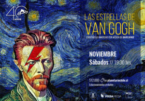 En este espectáculo inmersivo el público se sumergirá y viajará al interior de cinco famosos cuadros de Vincent Van Gogh acompañados de música de David Bowie.