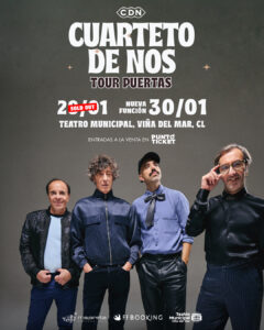 Cuarteto de Nos anuncia segundo concierto en el Teatro Municipal de Viña del Mar: jueves 29 y viernes 30 de enero.