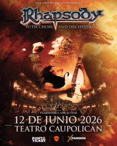 La legendaria banda de metal sinfónico vuelve a Chile para un evento único e histórico que todos los fanáticos han estado esperando. El 12 de junio de 2026, el Teatro Caupolicán será testigo de «Rhapsody – con Orquesta y Coro», un concierto que marcará un hito en la historia del metal en Latinoamérica.